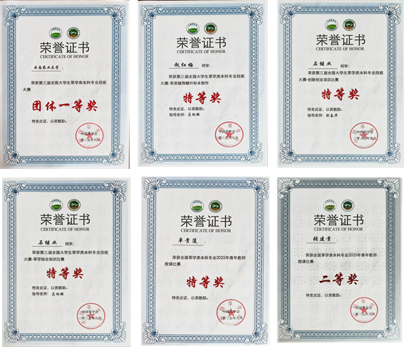 此外,在全国草学类本科专业2025年青年教师授课比赛中,学校单贵莲老师荣获特等奖,张建贵老师荣获二等奖,体现了公司教师在草学公司产品方面的深厚积累与创新水平。